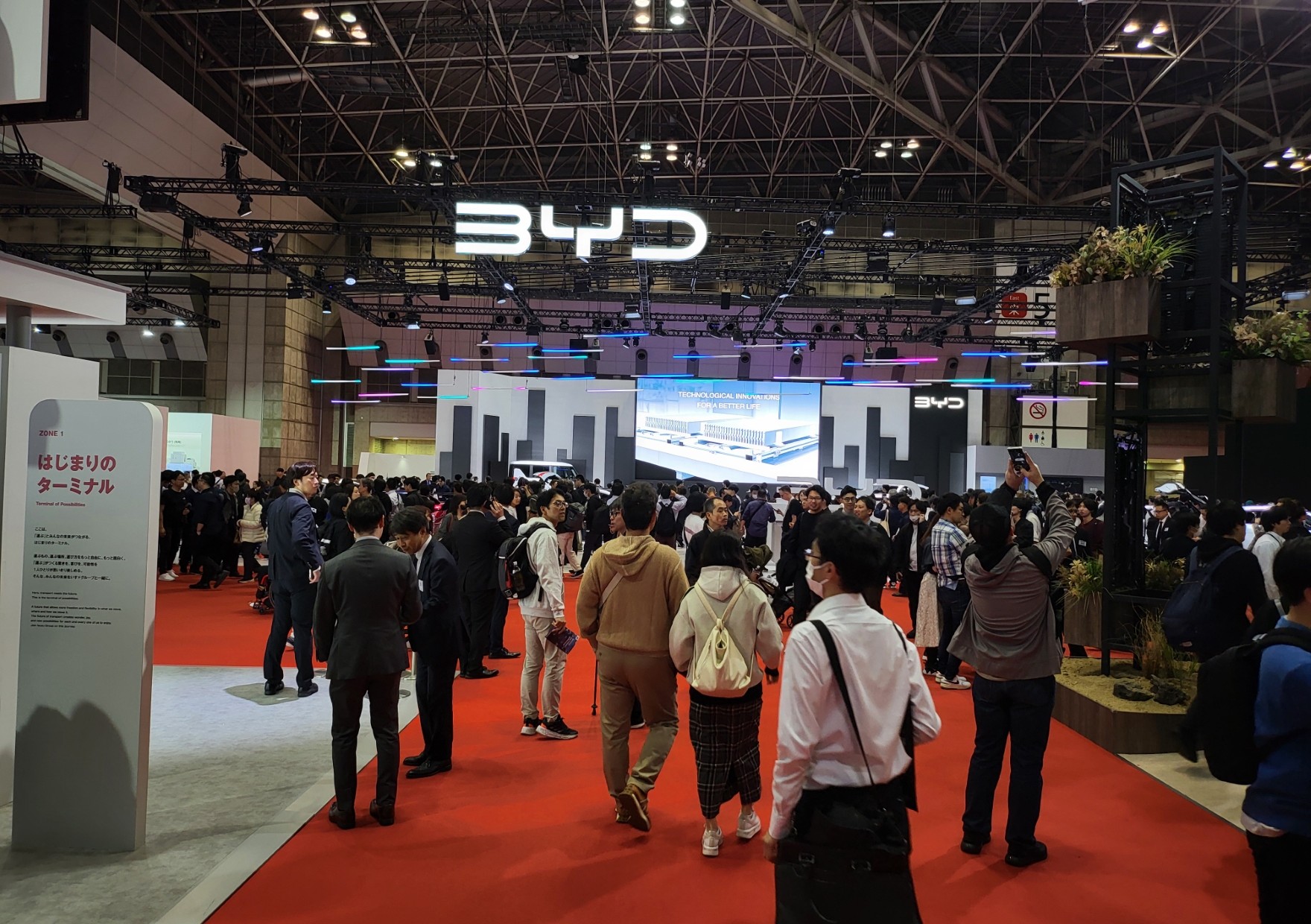 BYDは広大なスペースを確保していましたが、世界的なEV販売の踊り場を反映してか、以前と比べると演出にやや余白が目立ちました。