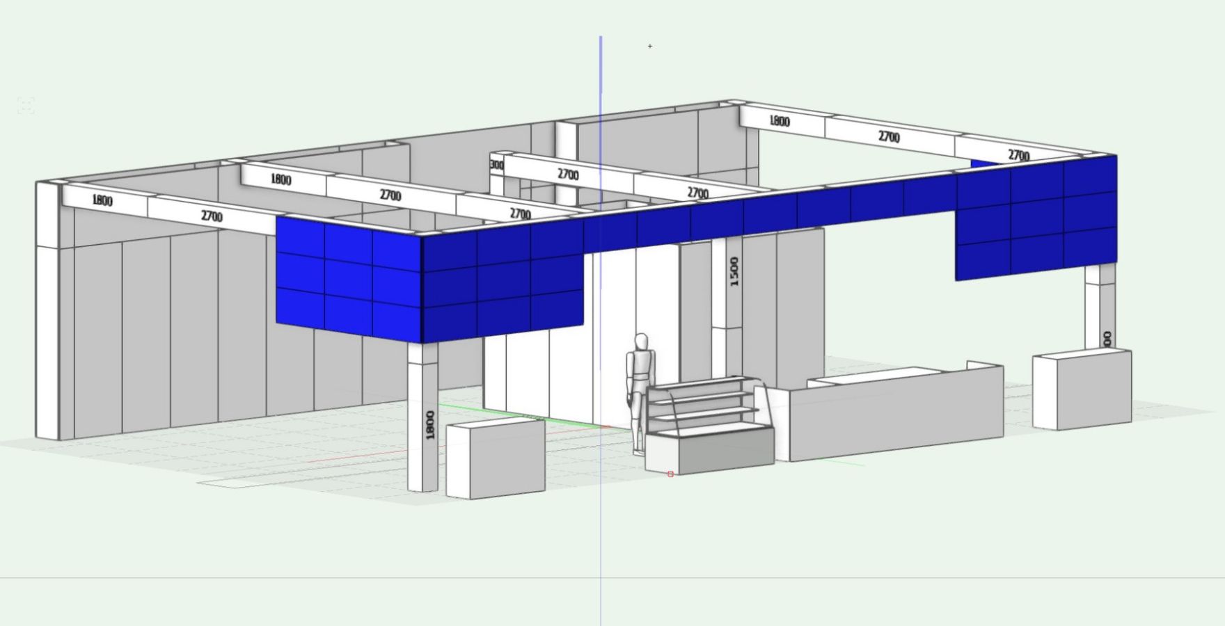 帰宅後、「一般的なブースサイズ(9〜12小間程度)でこの構成を試みたらどうなるか」と想像が膨らみ、パースをひとつ描いてみました。